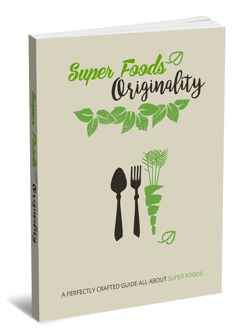 Super Foods Originality a perfectly crafted guide all about super foods Inside this ebook,you will discover the topics about nutrition-the super foods that keep you healthy,you really are what you eat,color your way to daily health .